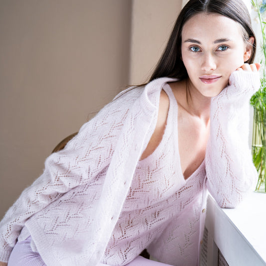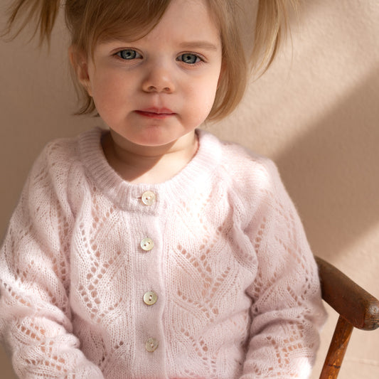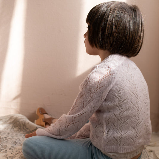 Kind filament silk-cashmere flower-patterned cardigan for kids - Peony