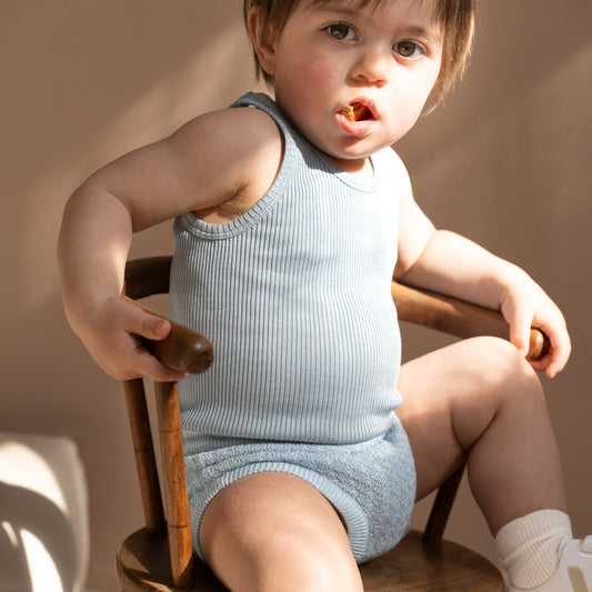 Otis silk-cashmere cable-knitted bloomers for babies - Sky