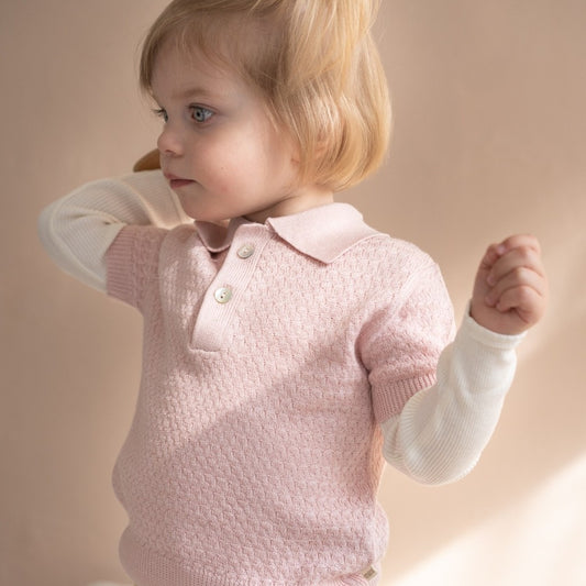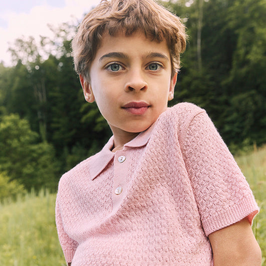 Oxford silk-cashmere cable-knitted polo for kids - Sweet Rose