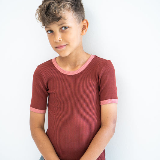 Blomst 2-6Y - Antique Red with Hibiscus Contrast
