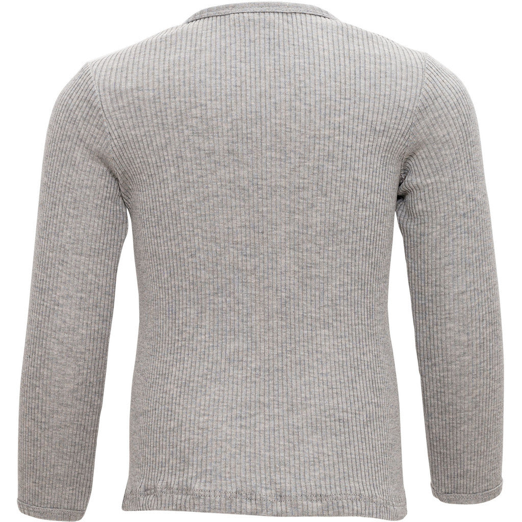 Sømløs langærmet bluse i blød silke-bomuldsblanding med kuvertåbning. Rose/Røde farver har en flæset rib. Alle andre farver har en unisex dobbeltstikning rib.