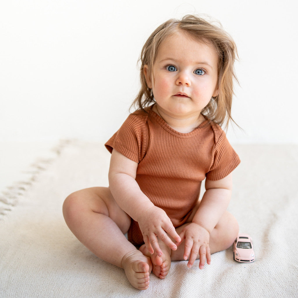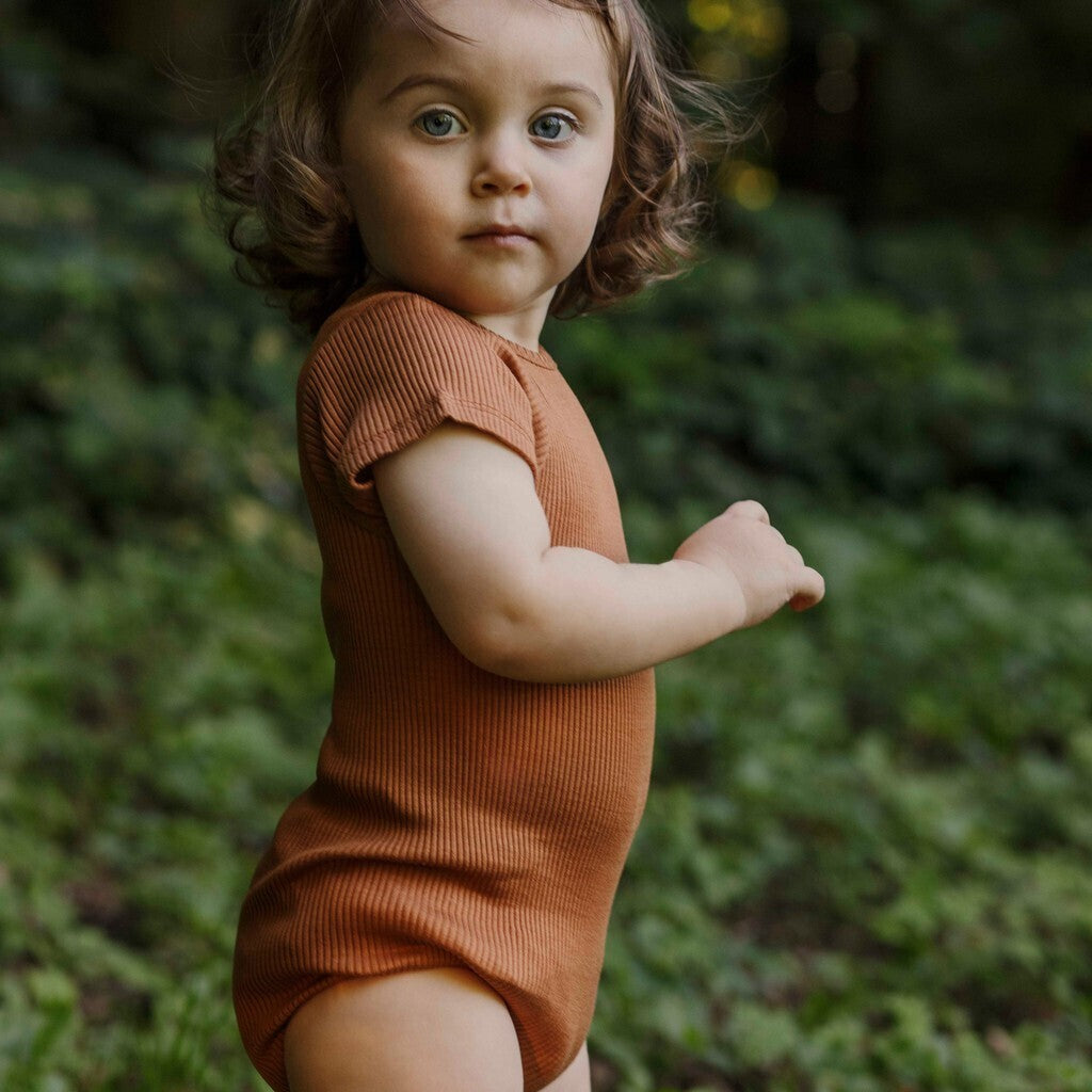 Sømløs kortærmet body i blød silke-bomuldsblanding med kuvertlukning i halsen. YKK nikkelfri trykknapper.