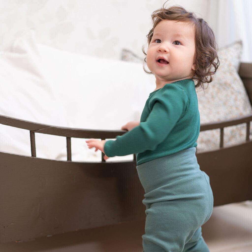 Vores sømløse langærmede body er lavet i en blød silke-bomuldsblanding. Bodyen har en kuvertudskæring og YKK nikkelfri trykknapper for nem påklædning og bekvemmelighed.