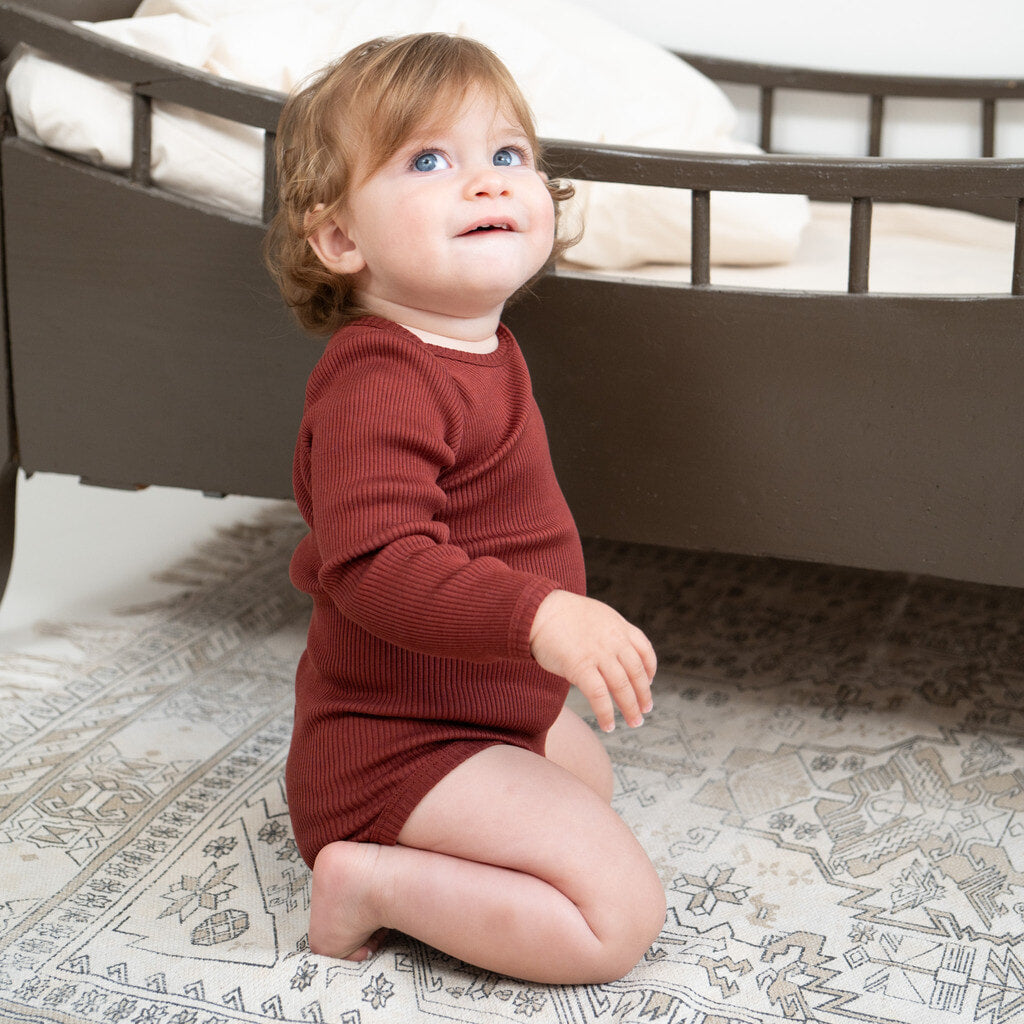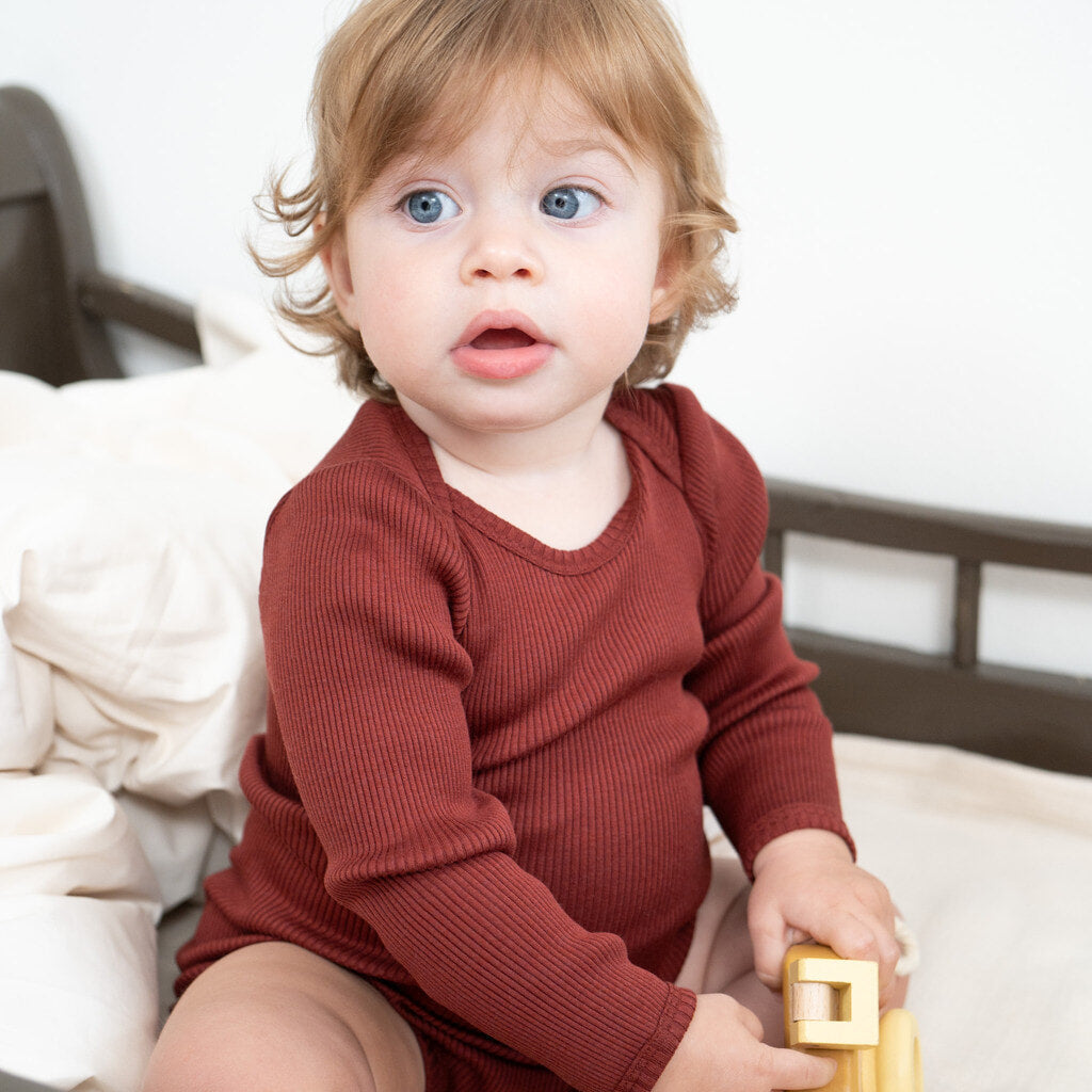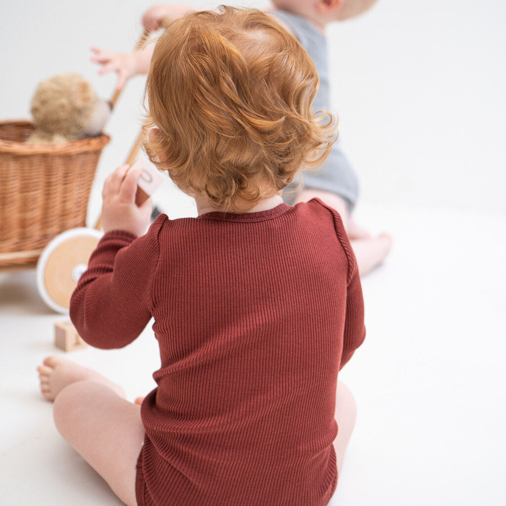 Vores sømløse langærmede body er lavet i en blød silke-bomuldsblanding. Bodyen har en kuvertudskæring i halsen og YKK nikkelfri trykknapper for nem påklædning og bekvemmelighed.