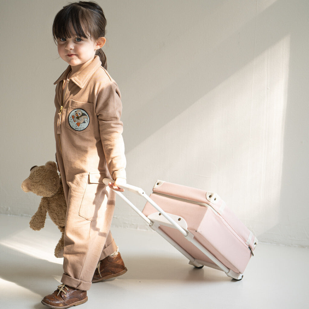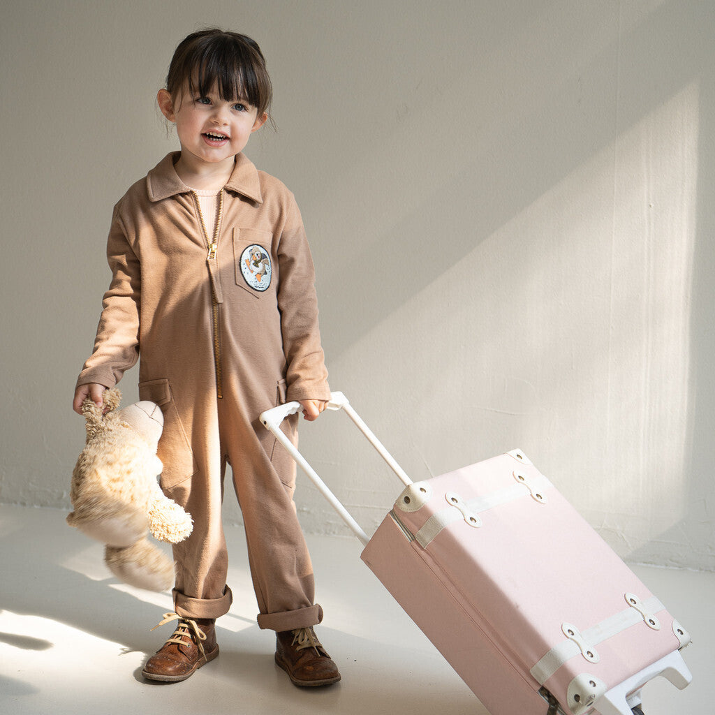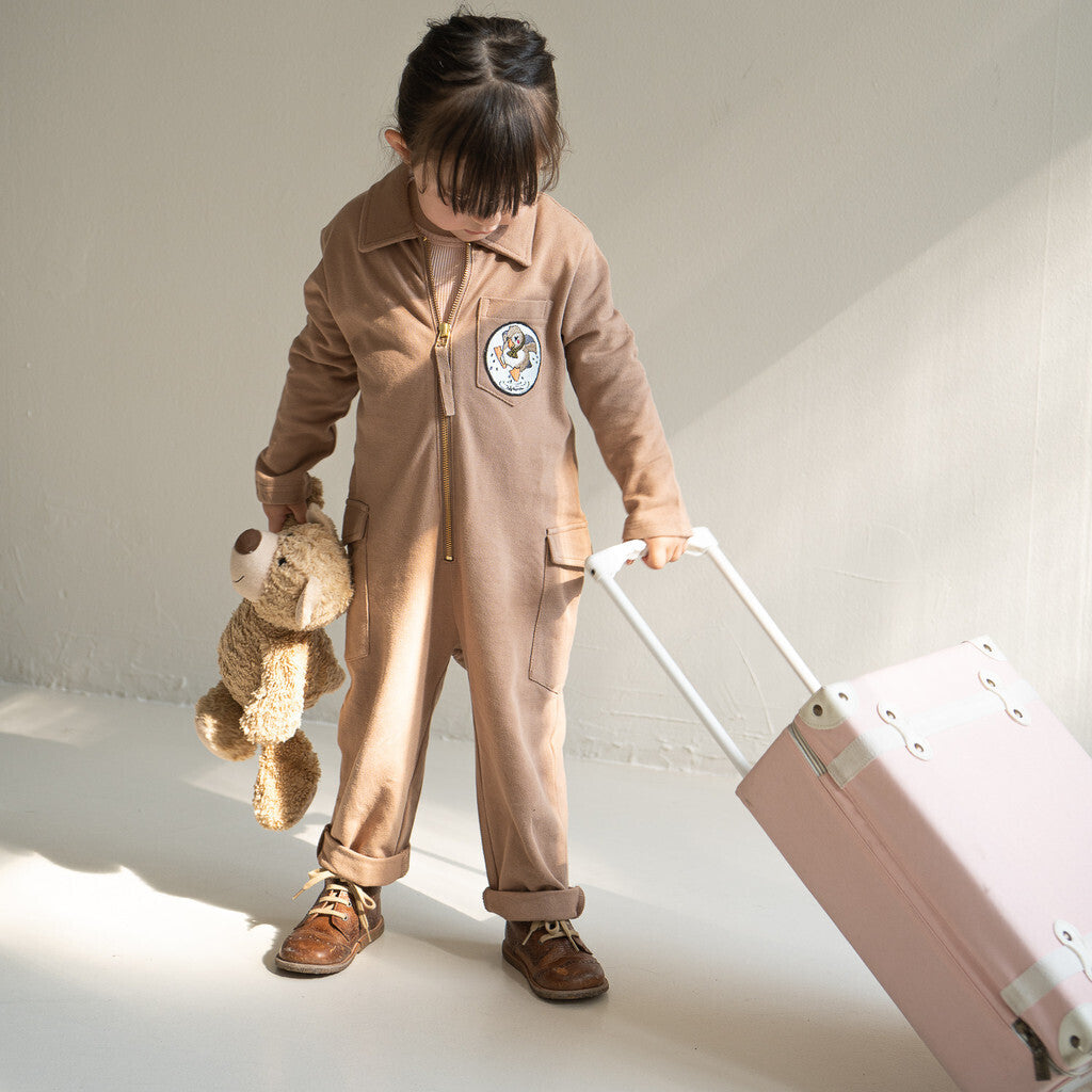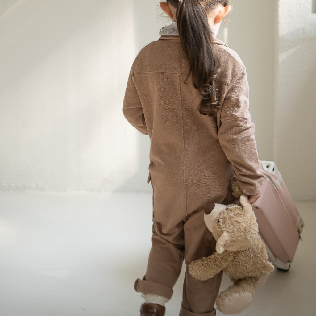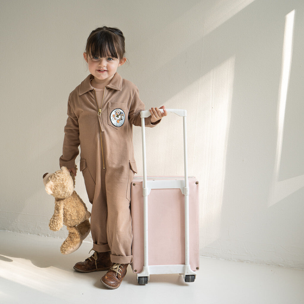 Løstsiddende jumpsuit med lynlås og sidelommer til drenge og piger, lavet i økologisk bomuldspiqué.