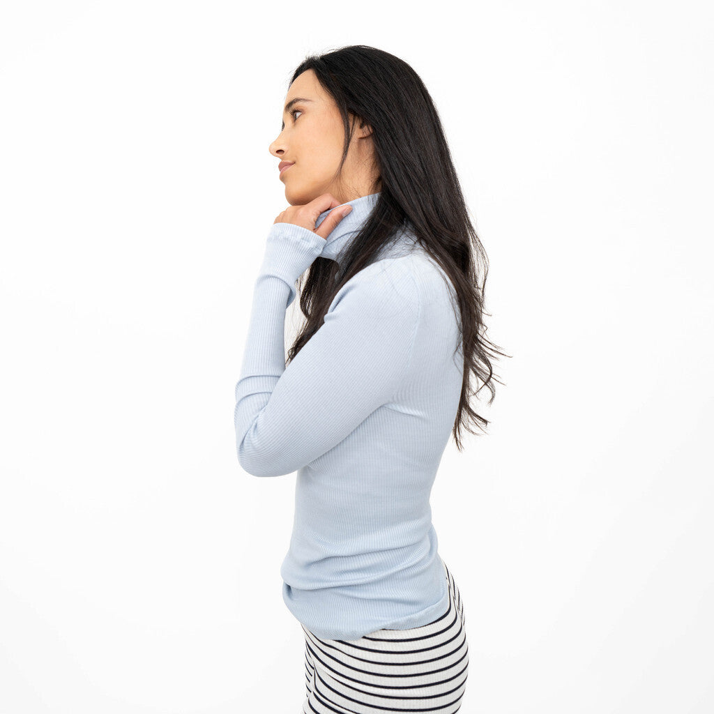 Vores sømløse rullekravebluse er et uundværligt efterårstilskud til enhver garderobe. Fremstillet af vores signatur silkesømløse stof, tilbyder denne rullekrave en luksuriøs følelse mod huden og en fejlfri finish.