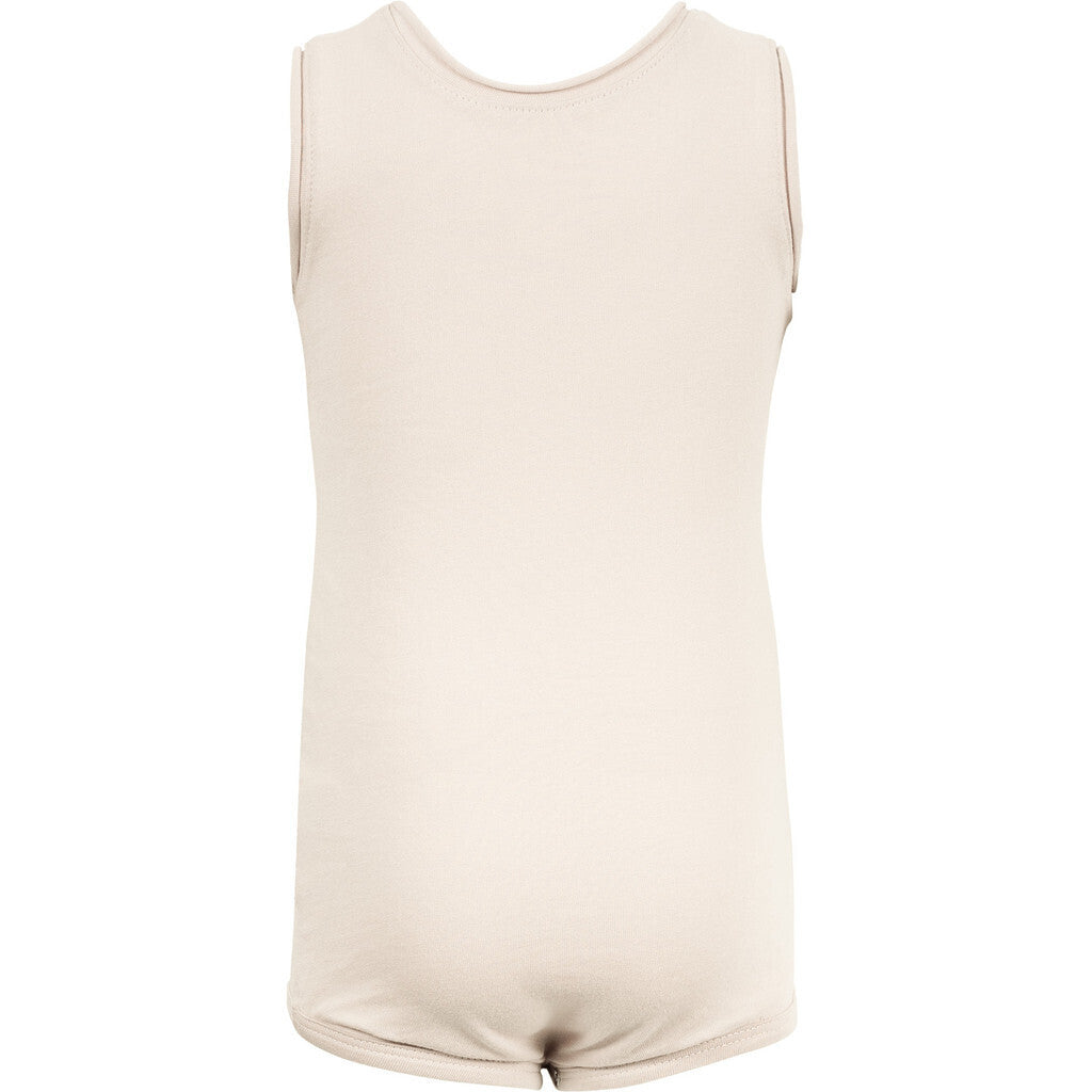 Blød body med stropper i økologisk bomuld. Ærme- og halsåbningen har rullende rå kanter. Bodyen kommer med to YKK trykknapper; naturligvis nikkelfri.