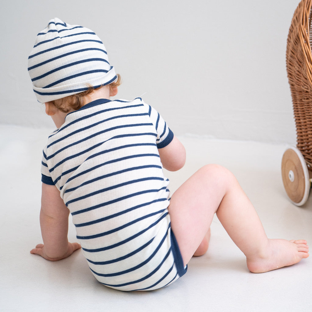 Denne body er lavet af 100% GOTS-certificeret økologisk bomuld og giver den perfekte kombination af komfort og bekvemmelighed. Den forener t-shirtens blødhed med bodyens praktiske egenskaber og er designet til at give maksimal komfort til din babys sarte hud.