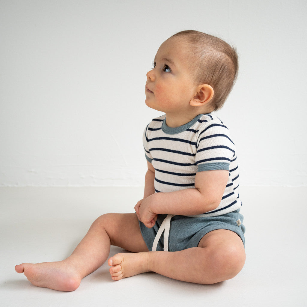 Denne body er lavet af 100% GOTS-certificeret økologisk bomuld og giver den perfekte kombination af komfort og bekvemmelighed. Den forener t-shirtens blødhed med bodyens praktiske egenskaber og er designet til at give maksimal komfort til din babys sarte hud.