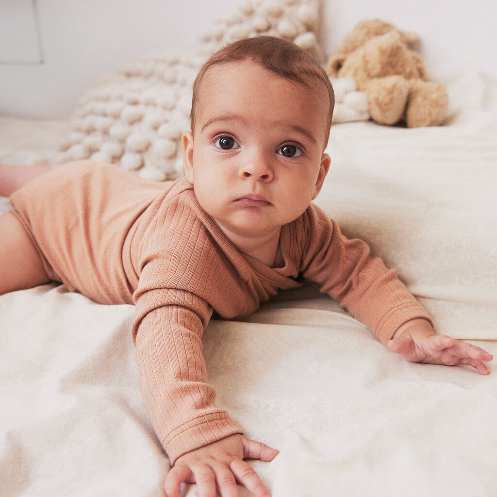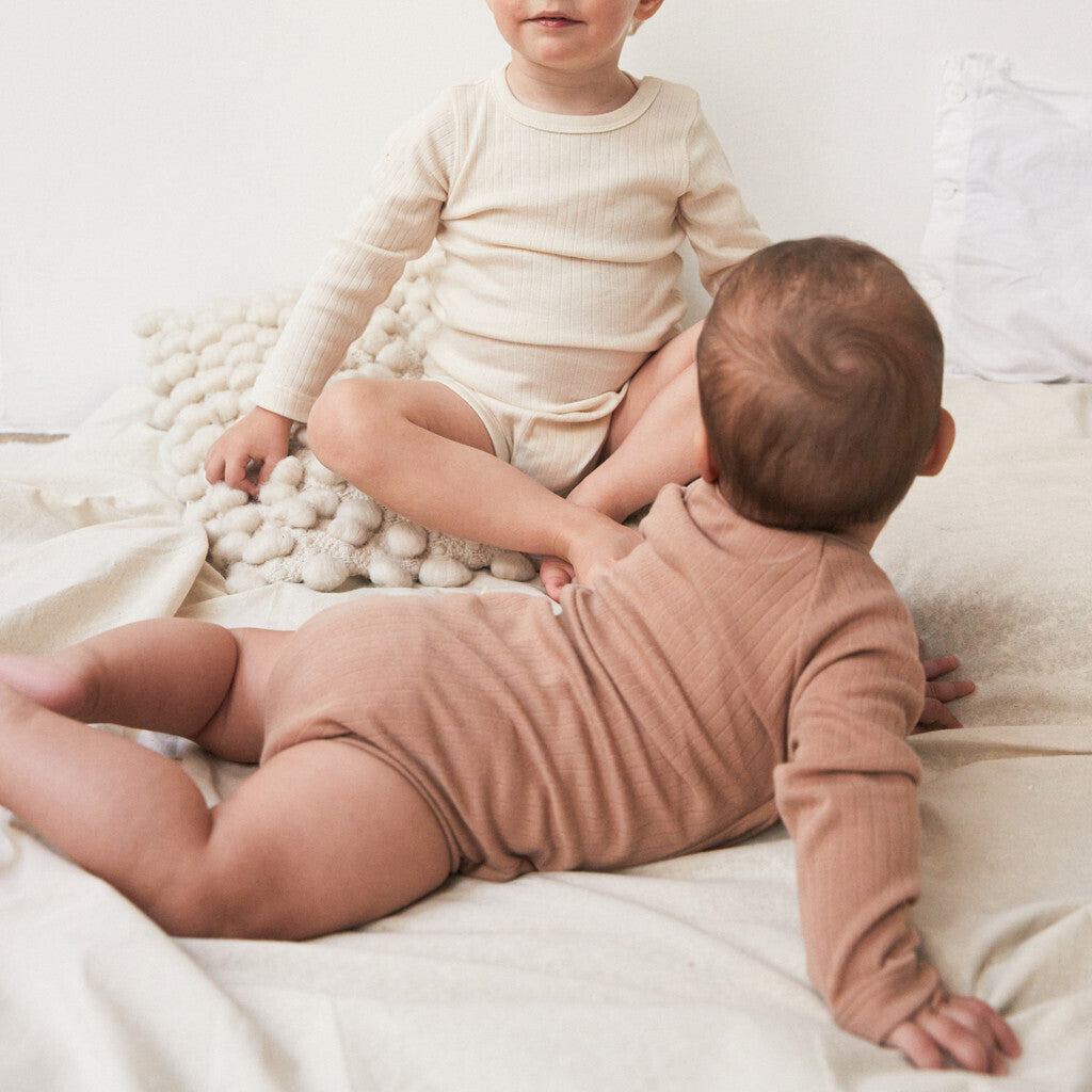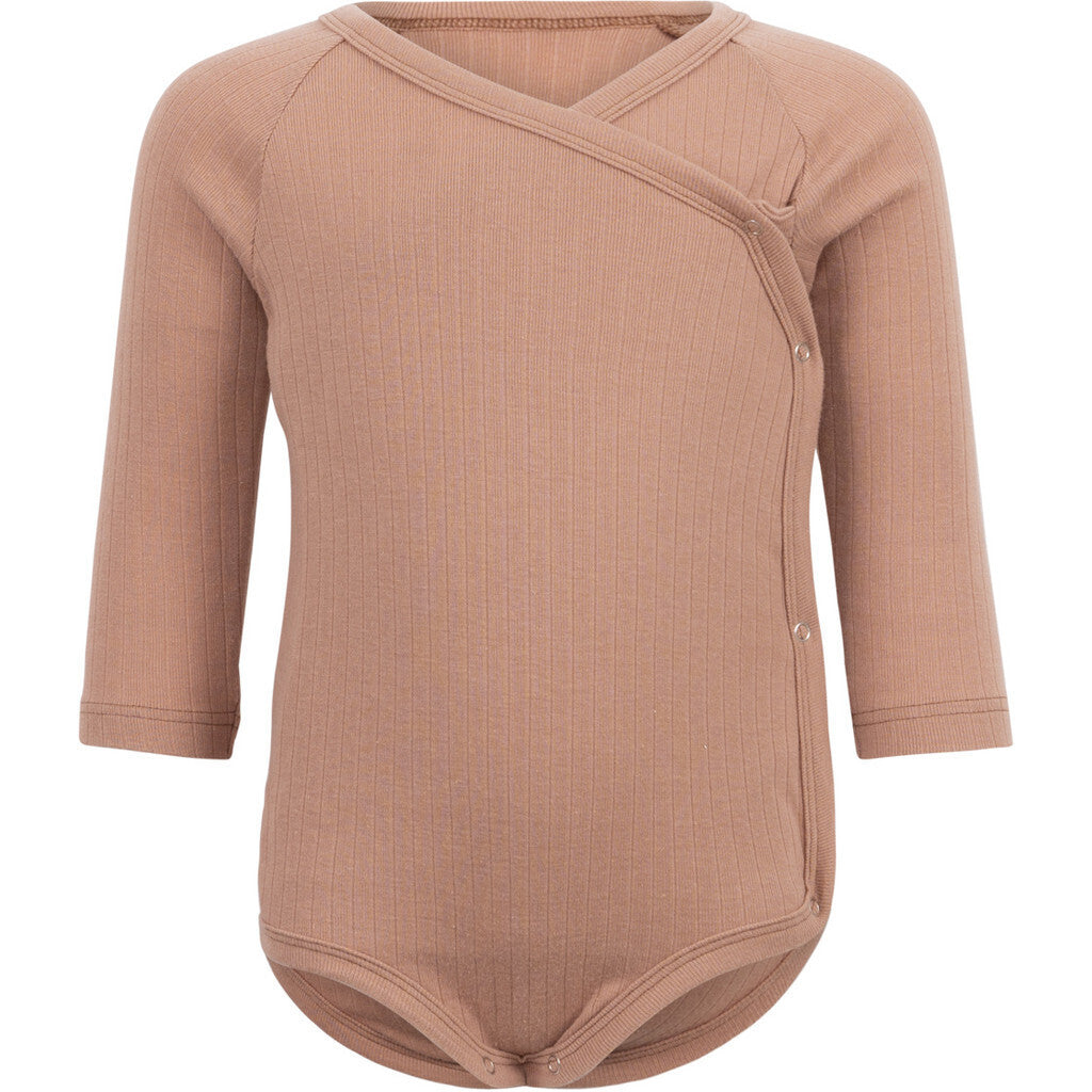 Vores 100% GOTS-certificerede langærmede slå-om-body er lavet af strækbar ribjersey for maksimal komfort og nem påklædning.