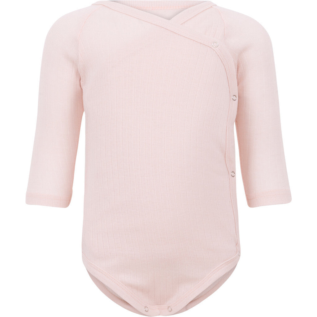 Vores 100% GOTS-certificerede langærmede slå-om-body er lavet af strækbar ribjersey for maksimal komfort og nem påklædning.