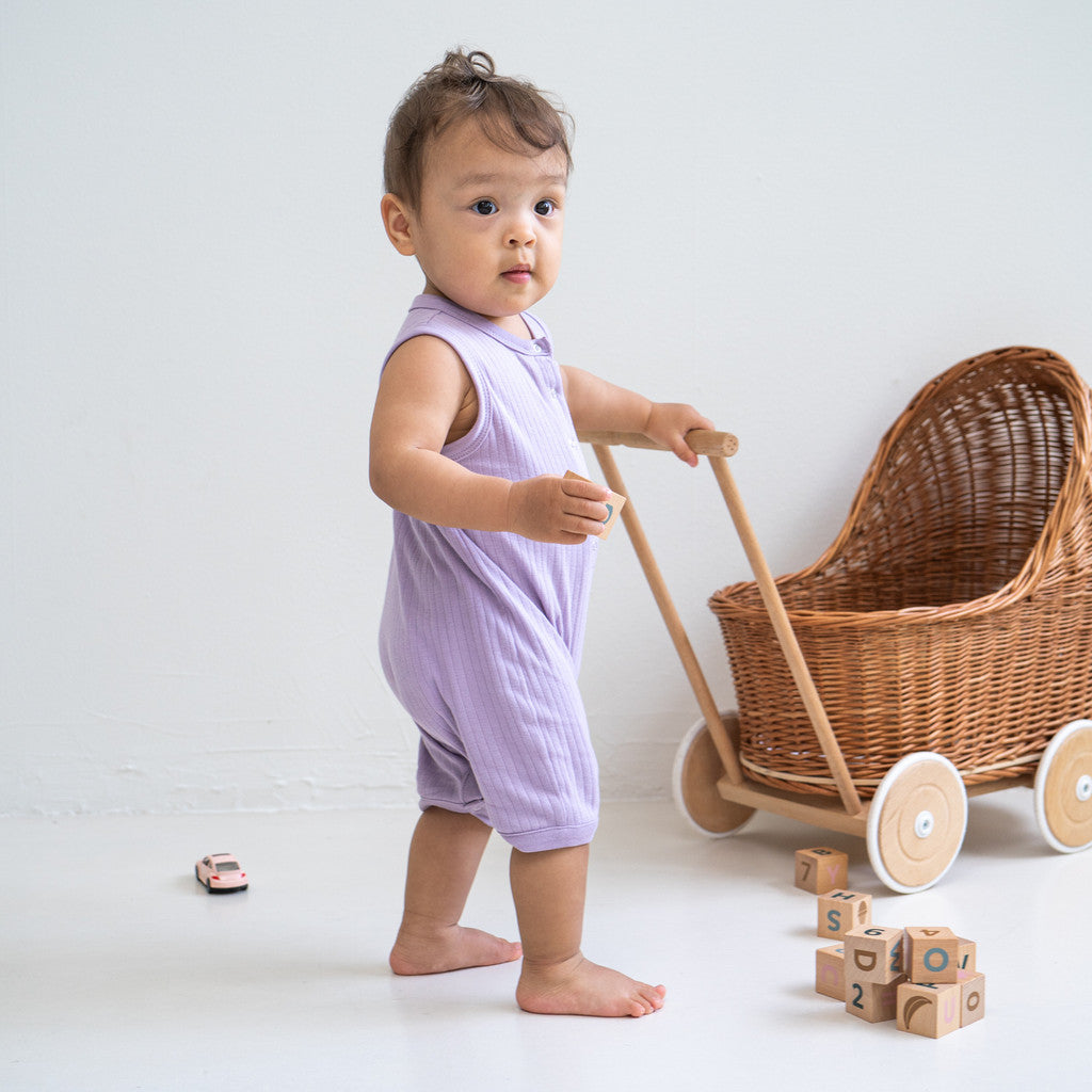 Vi præsenterer vores sommersuit, designet for maksimal komfort og bekvemmelighed til din lille. Den er lavet af 100% GOTS-certificeret økologisk bomuld i en blød 7x1 derby rib, og denne sommersuit er perfekt til babyer fra 0-2 år.