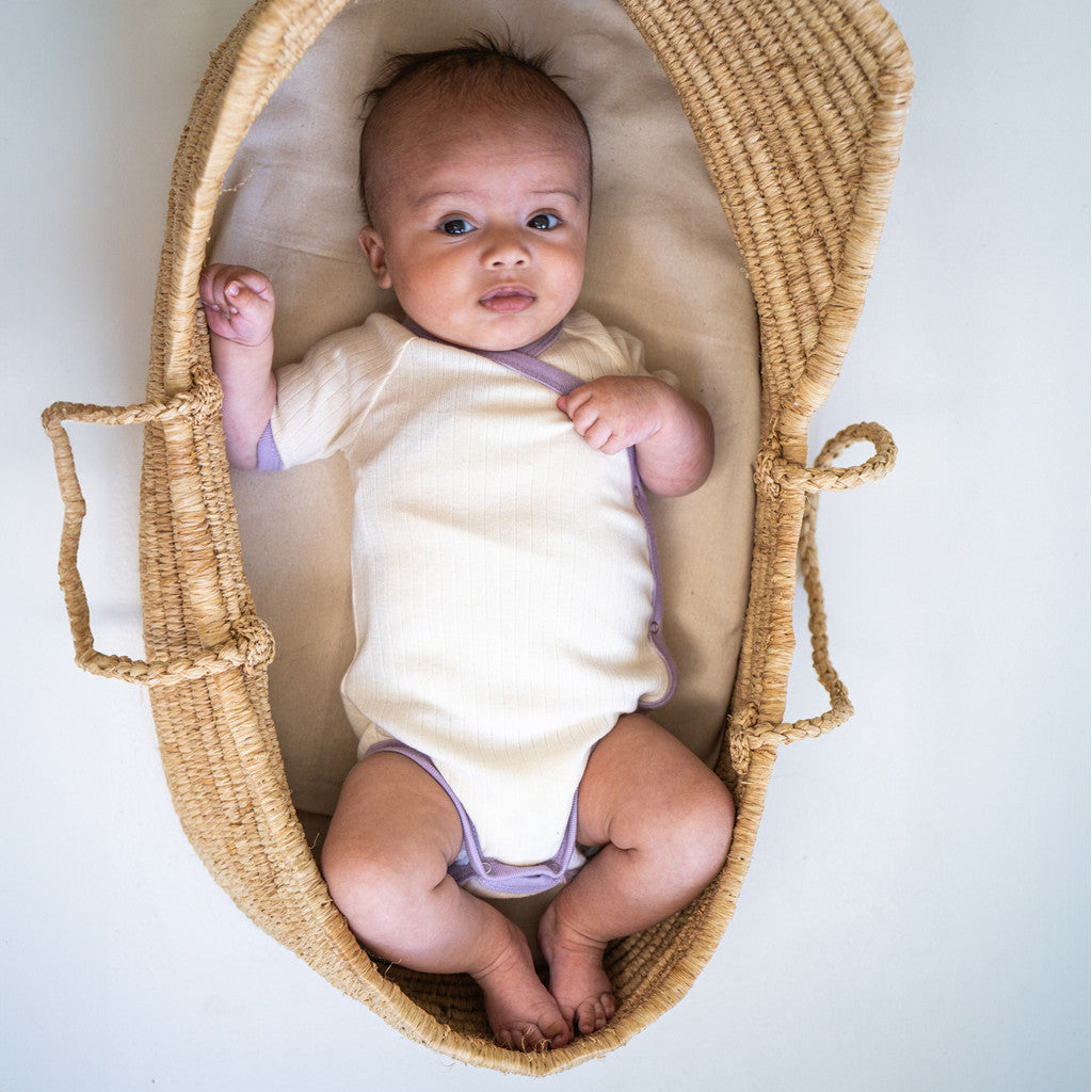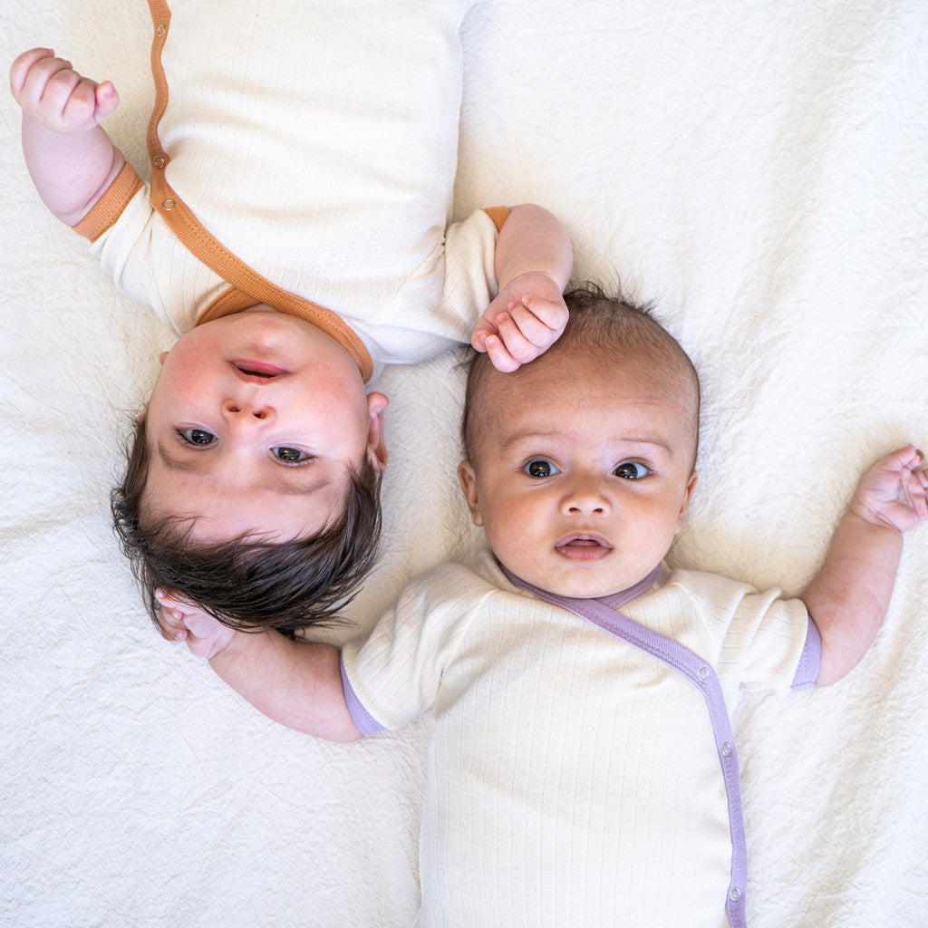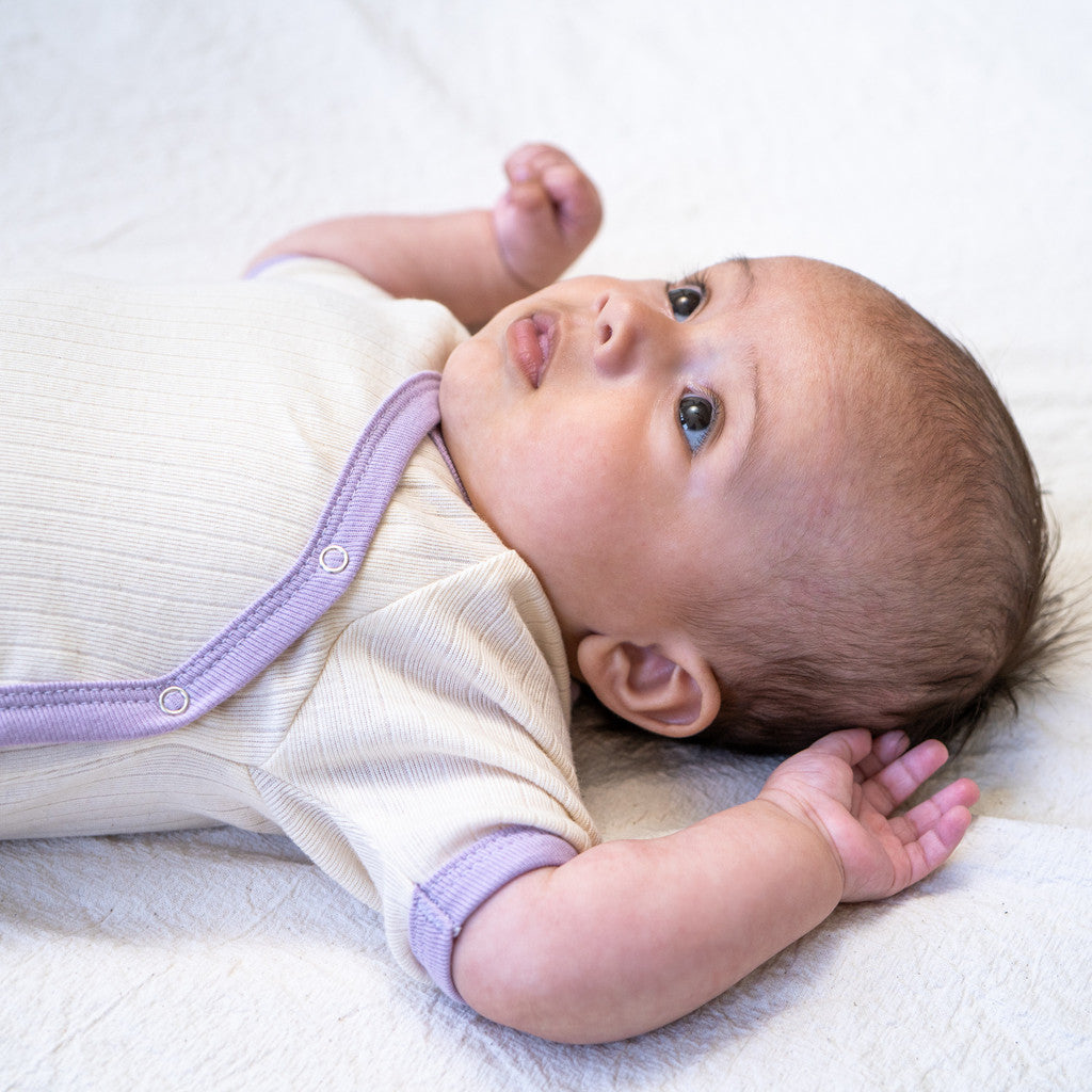 Denne kortærmede body i 100% GOTS-certificeret økologisk bomuldsjersey er et perfekt valg for dit barns komfort og velvære. Bodyen er lavet med stor omhu og har kontrastkanter omkring ærmerne og slå-om-åbningen samt YKK-trykknapper både indvendigt og udvendigt, så det bliver let som en leg at klæde dit barn på og skifte ble.