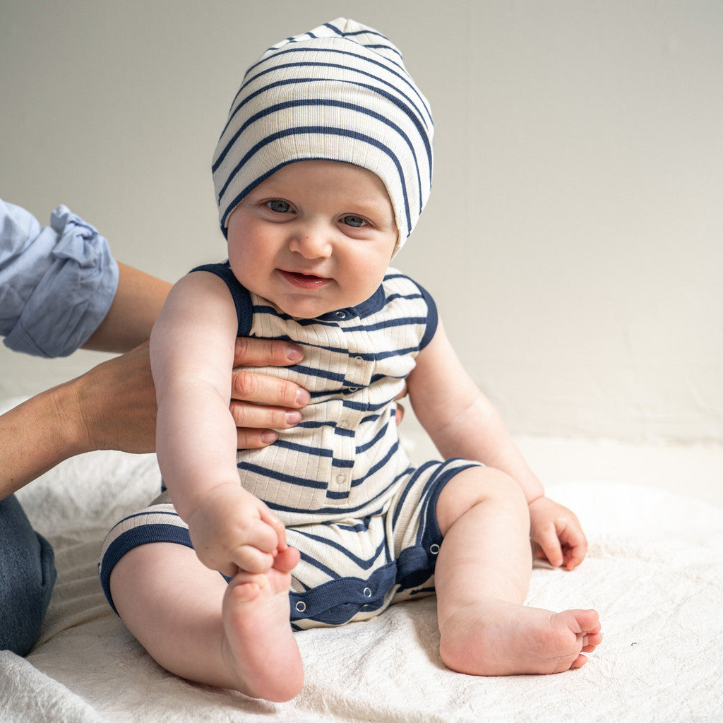 Nope fold-up beanie er et perfekt valg for dit barns komfort og velvære. Den er lavet af 100% GOTS-certificeret økologisk bomuld og giver et blødt og behageligt kram omkring dit barns hoved.