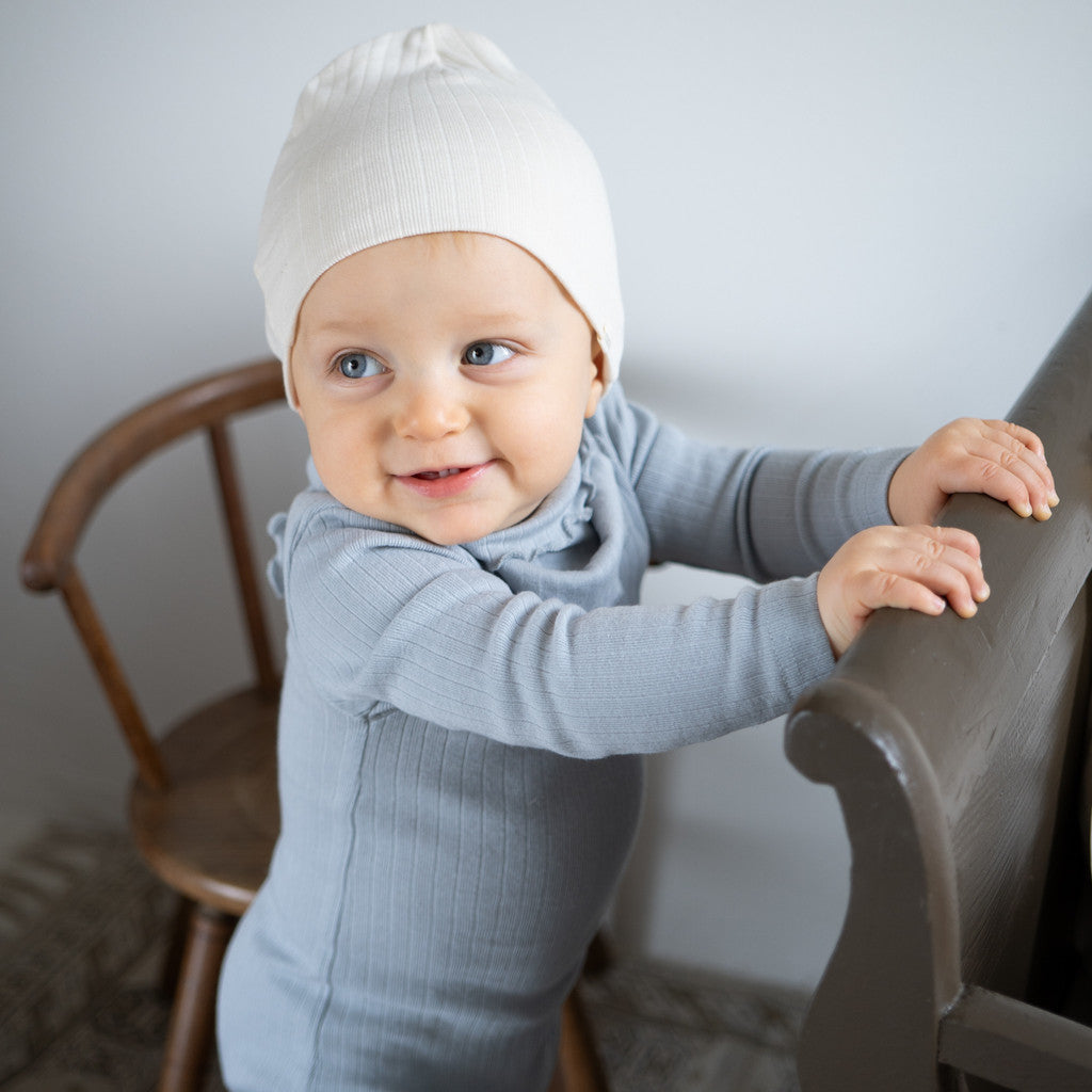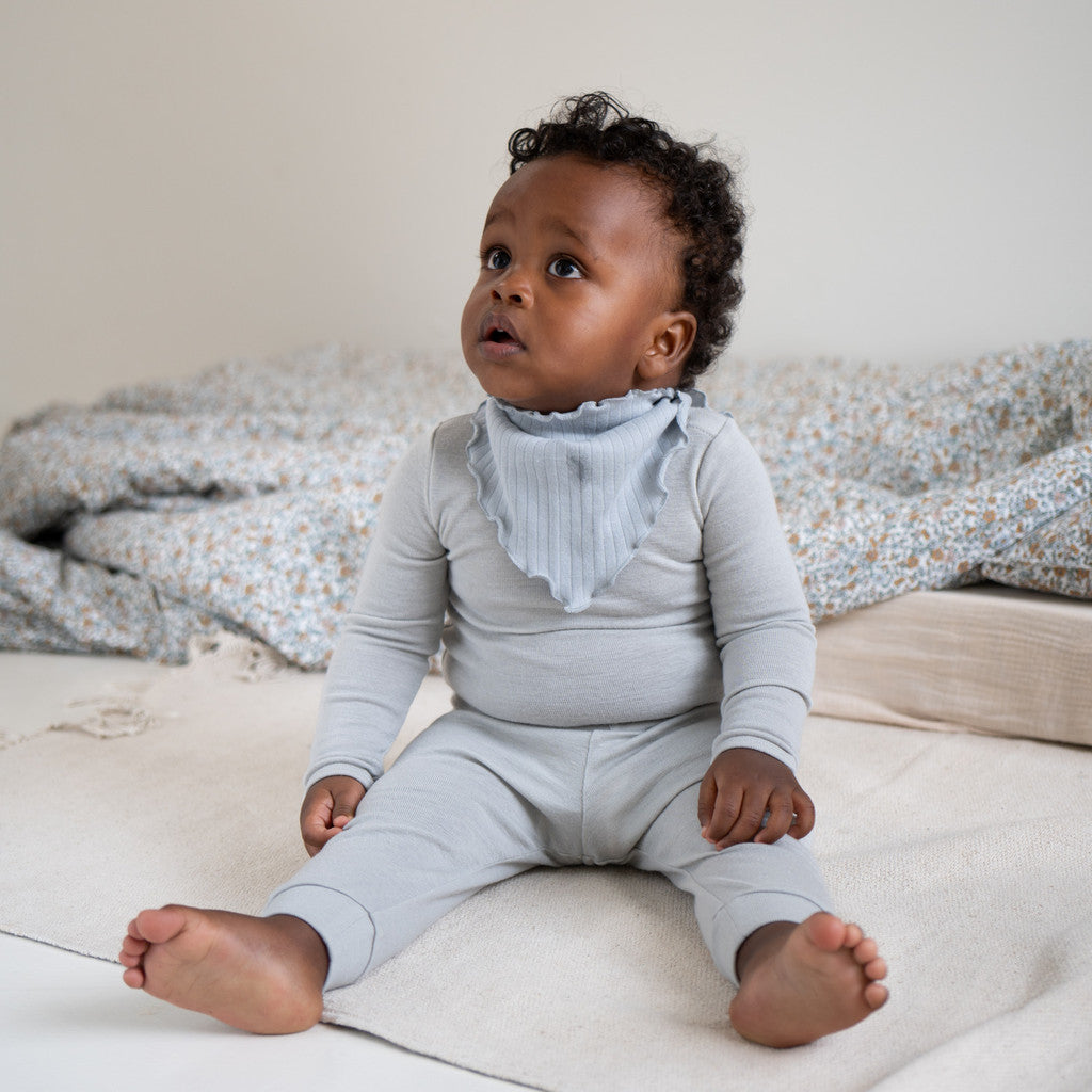 Det bløde flæseslips Nuria er lavet af 100% GOTS-certificeret økologisk bomuld og kan bruges som savlesmæk, tørklæde eller hårbånd. Ribjerseyen er meget blød og strækbar, hvilket giver komfort hele dagen.