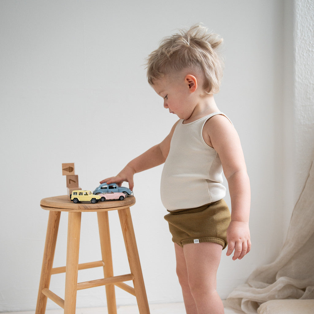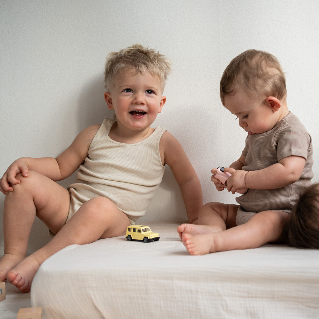 Blød strop-top body i bomuldsrib jersey med nikkelfri YKK trykknapper.