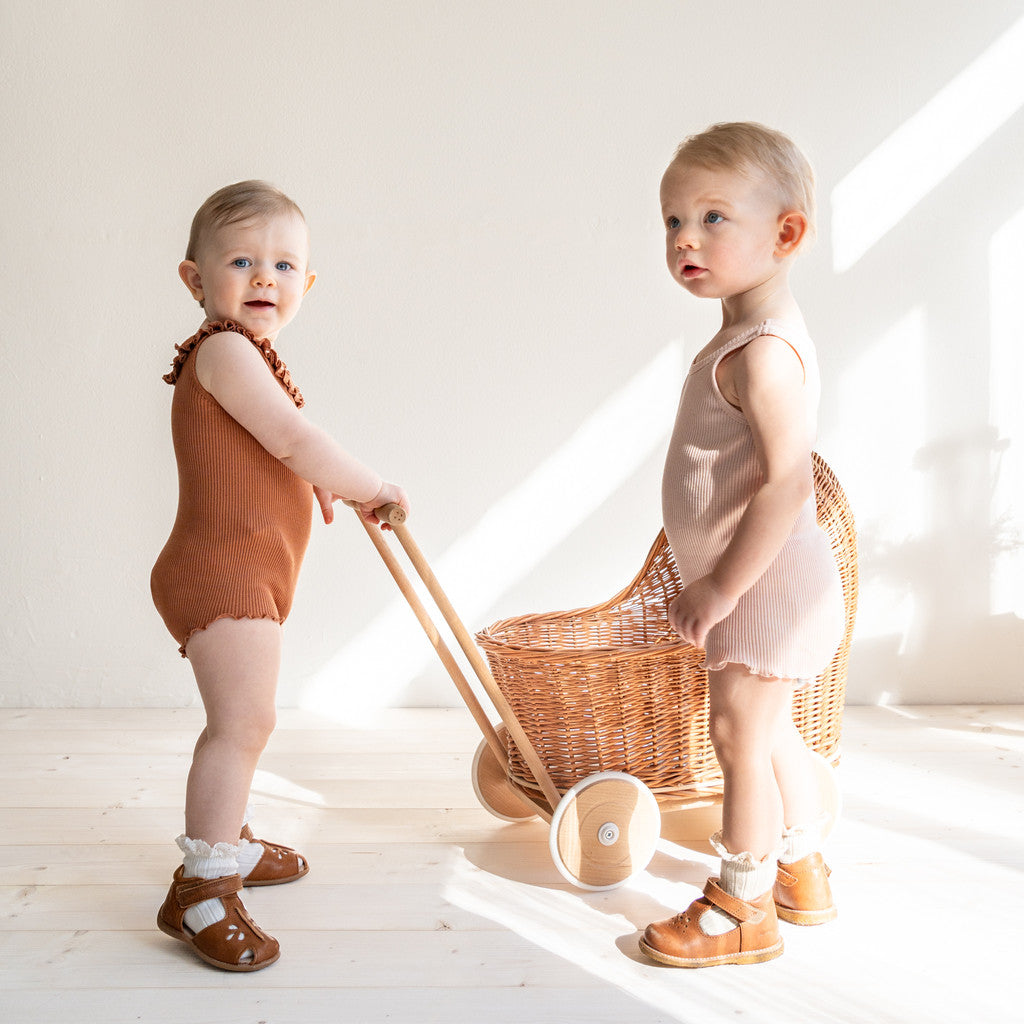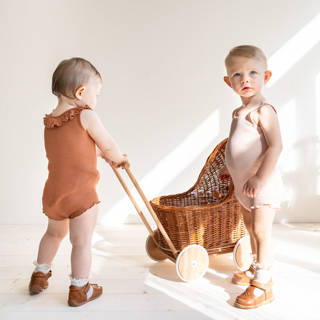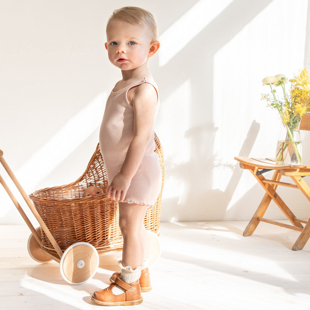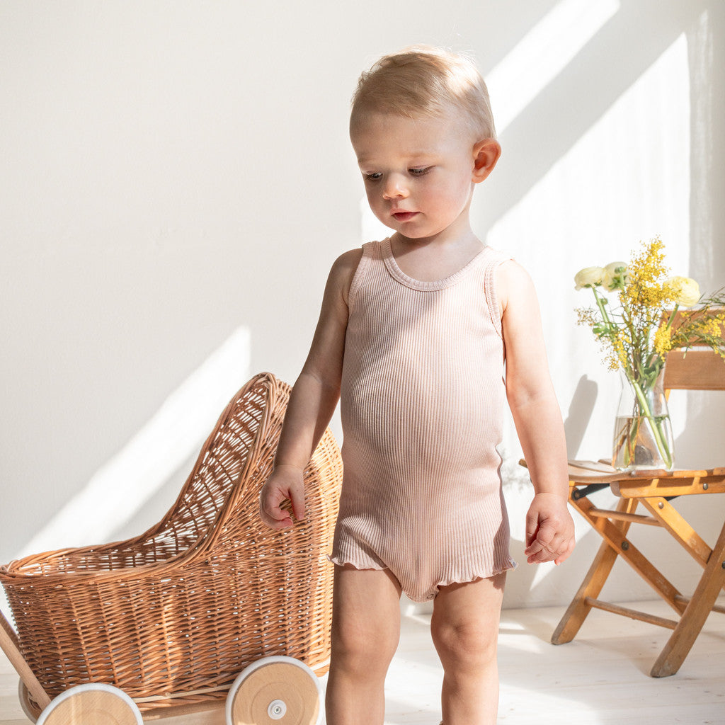 Der Barcelona Strap-Top Body ist ein zartes und vielseitiges Stück, gefertigt aus einer luxuriösen 4x3-Rippmischung aus Seide und Baumwolle. Mit weichen Rüschen an den Beinöffnungen verleiht er einen flexiblen, mädchenhaften Touch, während zwei YKK-Druckknöpfe im Schritt das An- und Ausziehen ganz einfach machen. Superweich und atmungsaktiv – perfekt als erste Schicht an kühleren Tagen oder solo an warmen Sommertagen. Ein zeitloses Lieblingsstück für die Garderobe deines kleinen Lieblings.