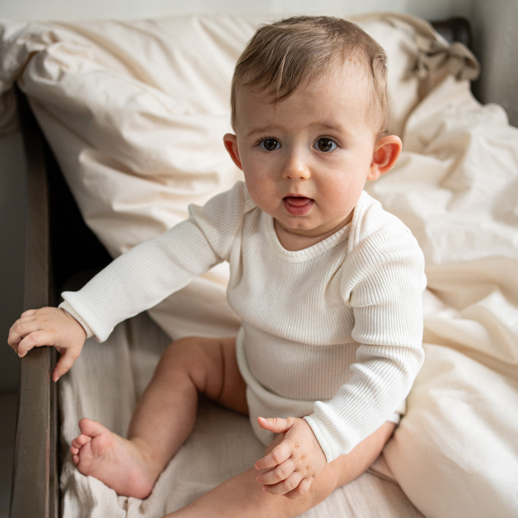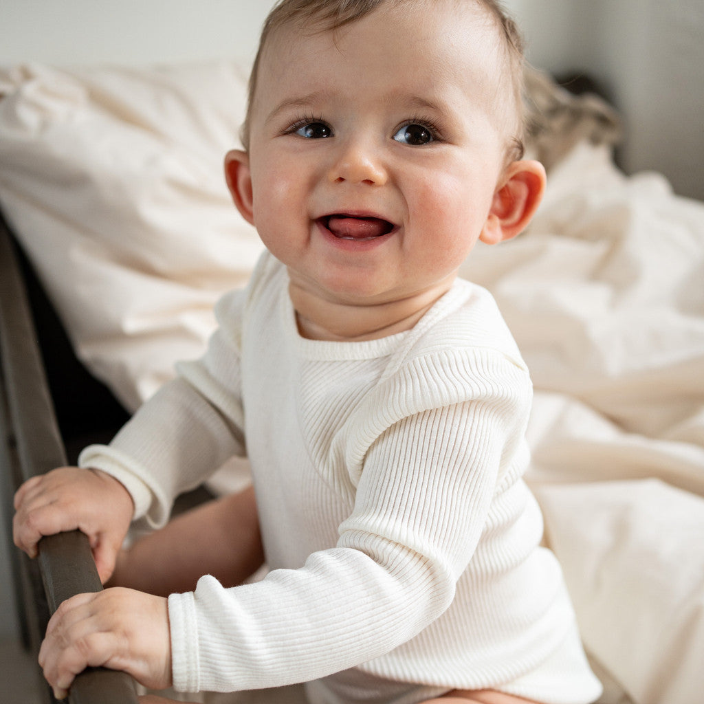 Seide ist bekannt für ihre hypoallergenen Eigenschaften und ihre sanfte Berührung auf der Haut. Dies, kombiniert mit der nahtlosen Konstruktion des Kleidungsstücks, macht diesen Body zu einer ausgezeichneten Wahl für Kinder mit empfindlicher Haut.