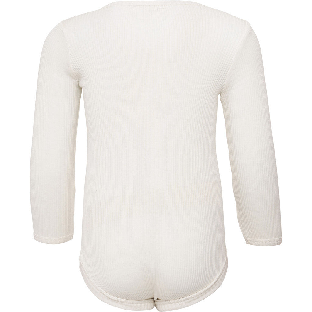 Unser nahtloser Langarm-Body ist aus einer weichen Seide-Baumwoll-Mischung gefertigt. Der Body verfügt über einen Umschlaghalsausschnitt und YKK nickelfreie Druckknöpfe für einfaches Anziehen und Komfort.