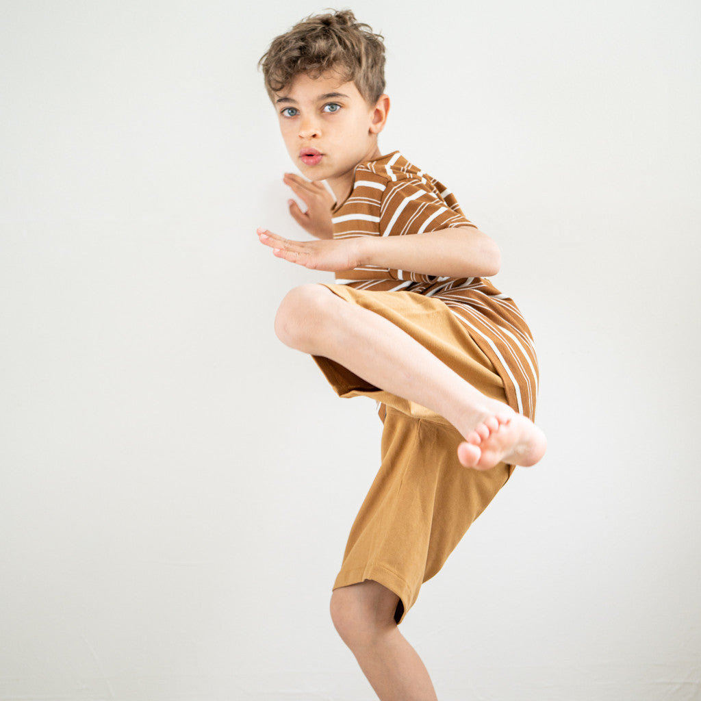 Ces bermudas élégants, confectionnés en tissu piqué de coton croquant, allient confort et style. Fabriqués avec du coton biologique certifié GOTS à 100%, ces shorts sont à la fois tendance et écologiques.