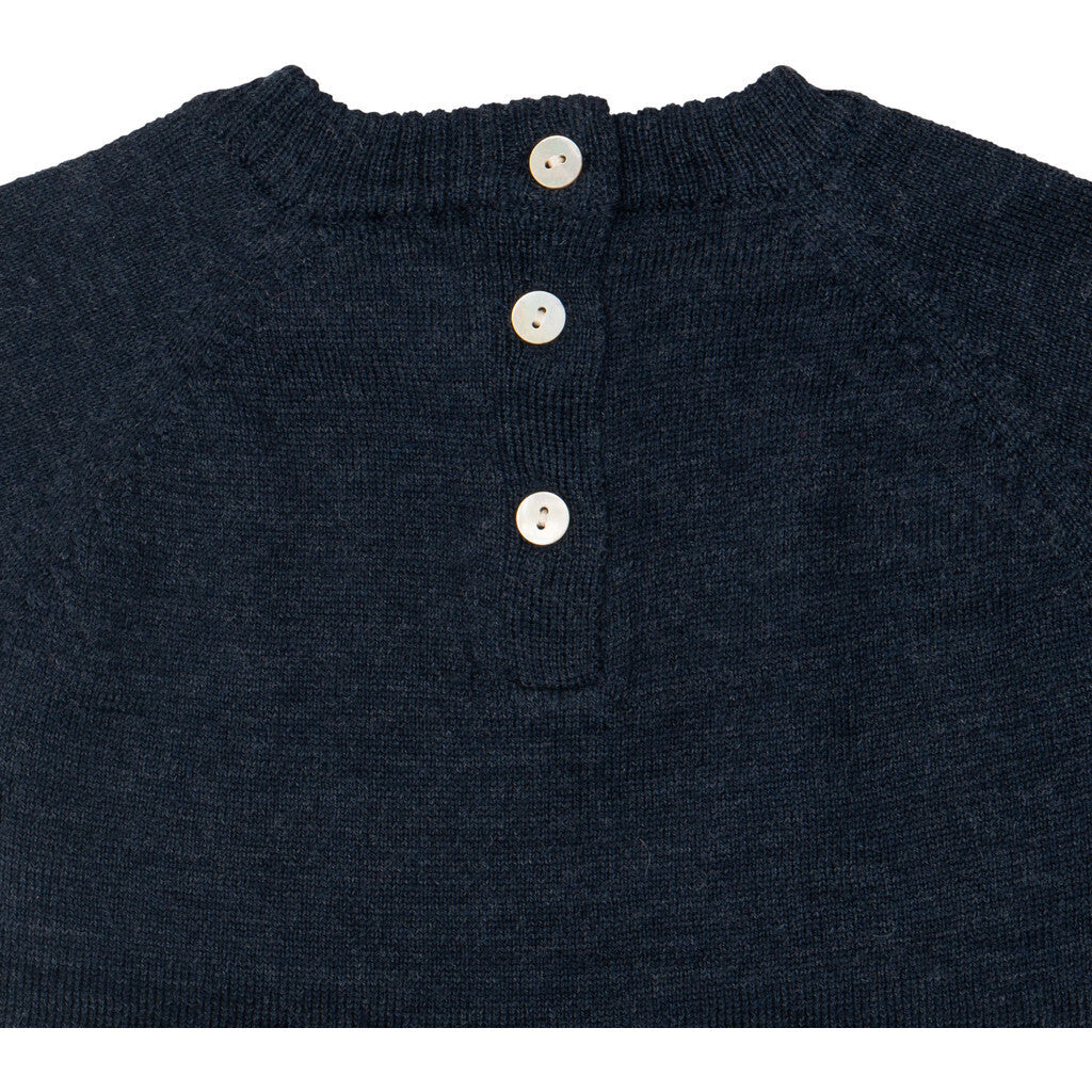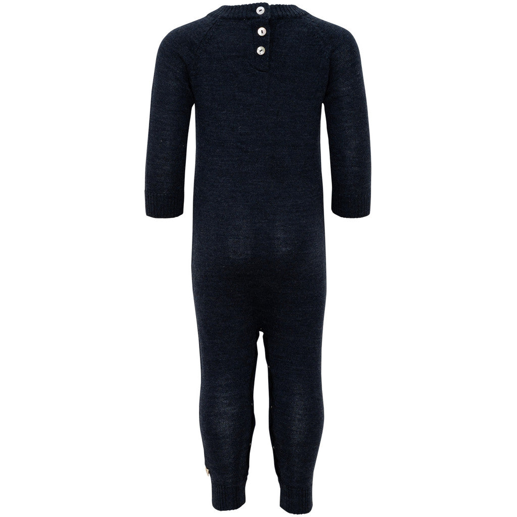Baby jumpsuit with a comfortable fit made in soft Italian merino wool. With snap-buttons from cuff and around leg-opening, for easy dressing and diaper changes.