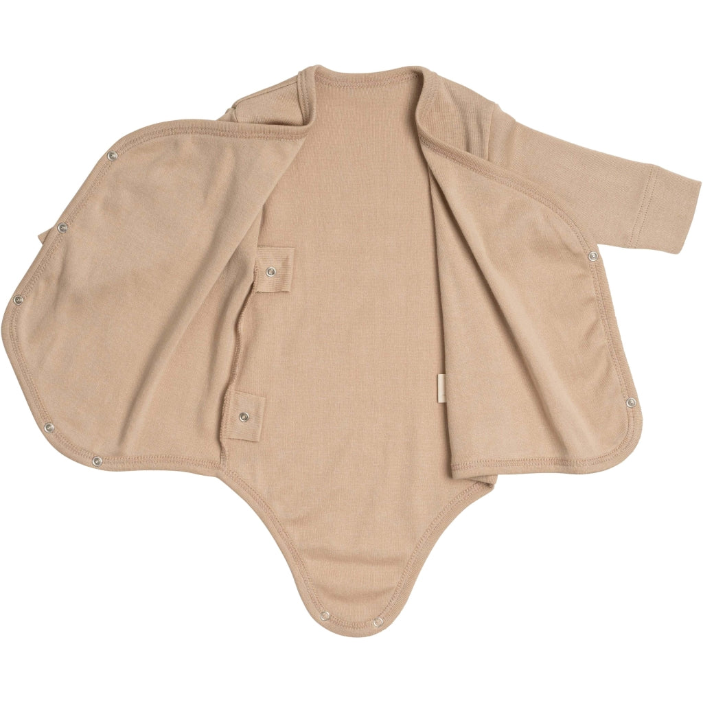 This GOTS certified organic cotton jersey wrap-body is a perfect choice for your little one's comfort and well-being. Crafted with meticulous care, this wrap-body features long sleeves and an easy YKK snap-button closure, making dressing and changing a breeze.