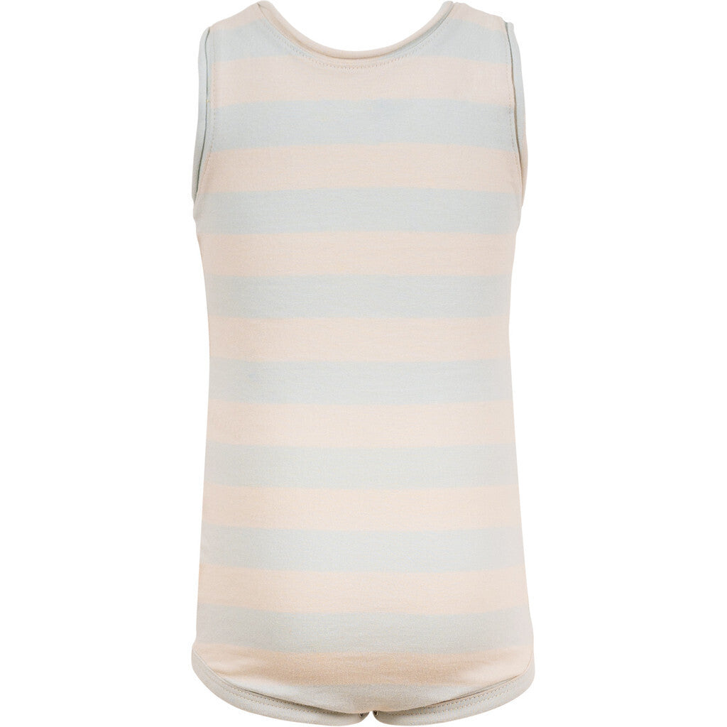 Soft strap-top body in organic cotton. The sleeve- and neck-opening have rolling raw edges. The body comes with two YKK popper fasteners; naturally nickel free.