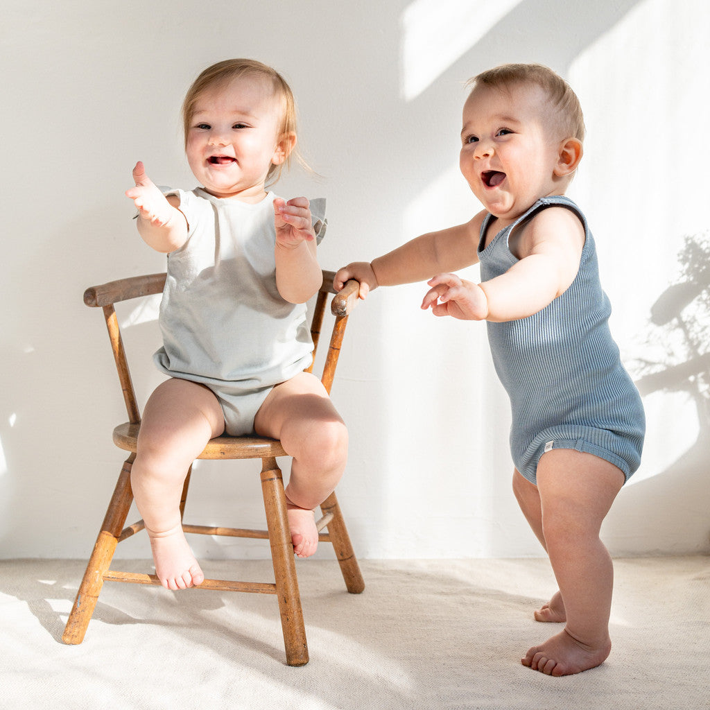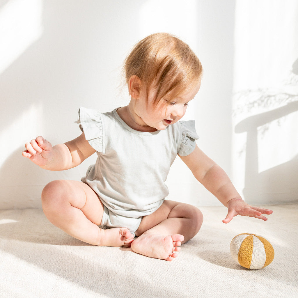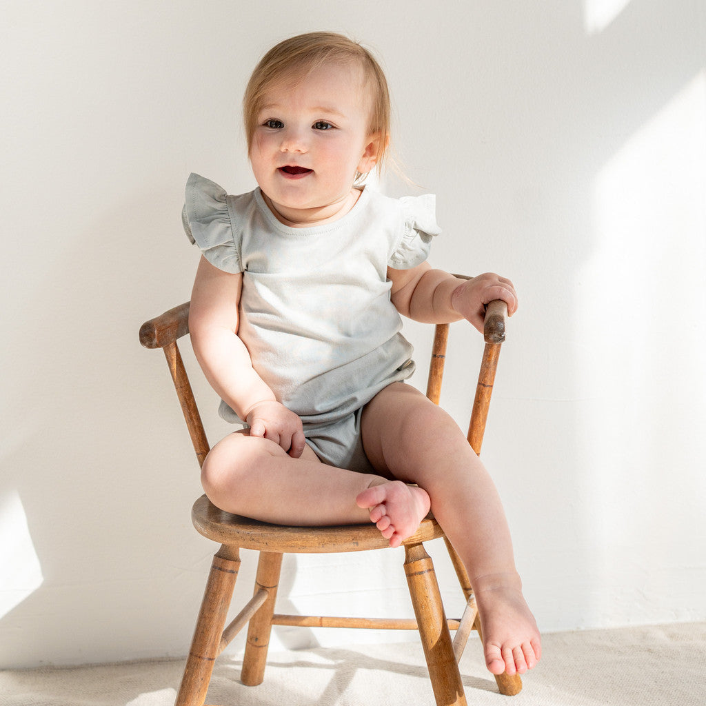 Round-neck volume body in lightweight organic cotton with frills at the shoulder for a girly look and added sun protection for sensitive shoulders. A single mother-of-pearl button in the back of the neck for easy dressing. Upper part is full volume with a soft waist and a slim fit from waist down. Perfect as romper or styled with a skirt or pants.