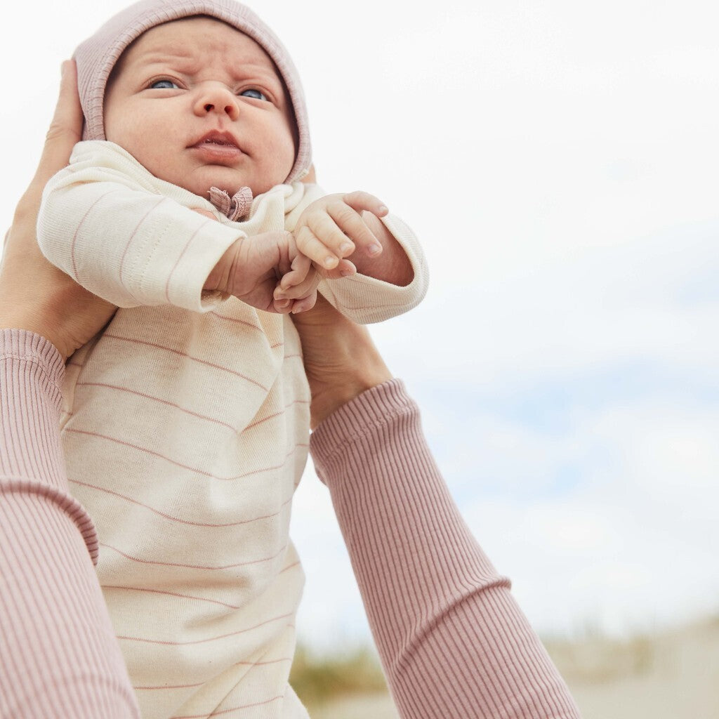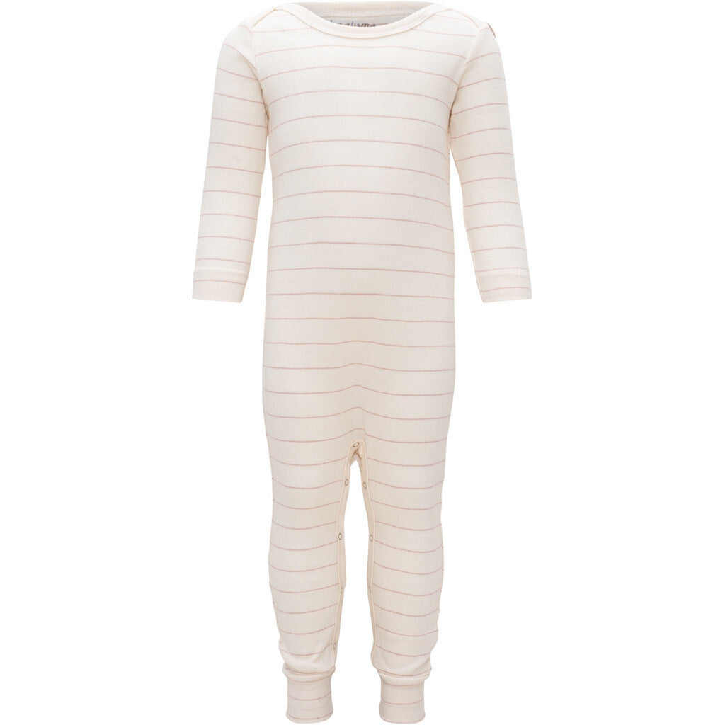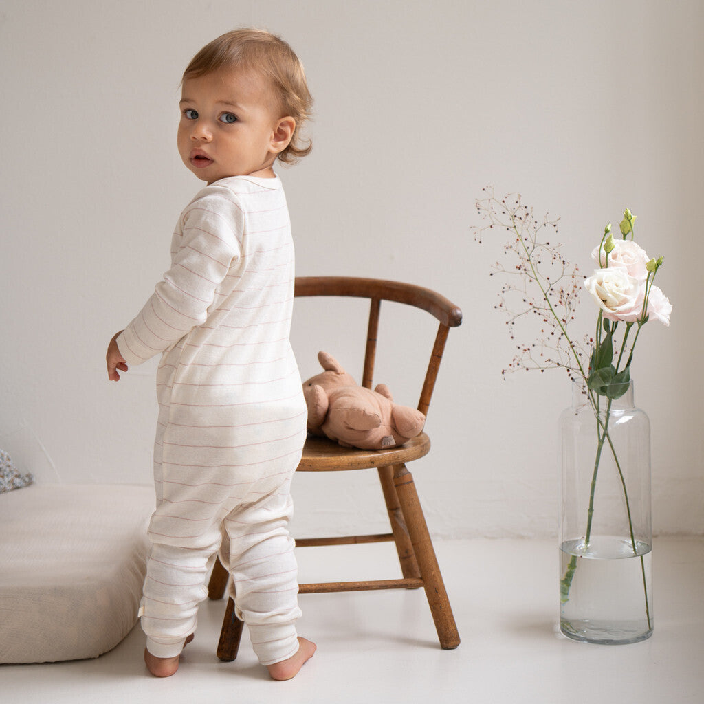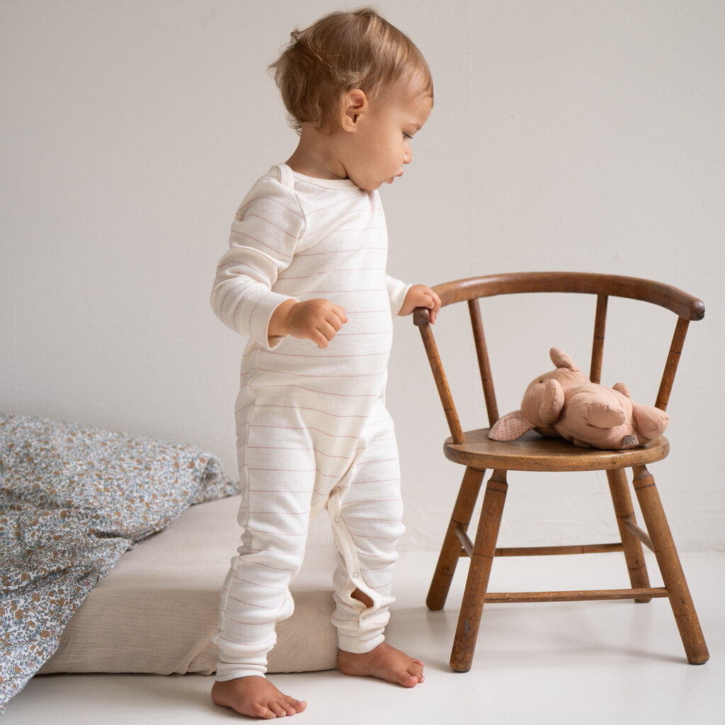 Soft long-sleeve pyjamas/jumpsuit in a stretchable rib jersey with easy-to-dress envelope neck-opening. Sleeves have a folded double stitch. For easy dressing, the pyjamas/jumpsuit comes with closed double layered rib-cuffs and YKK popper fasteners along the leg-opening; naturally nickel free.