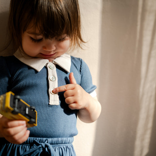 Bolero - 儿童真丝翻领T恤 - Fjord Blue with Ecru