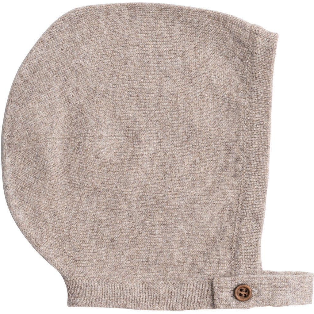 婴儿帽采用奢华柔软的美利奴羊毛制成。它佩戴舒适,侧面有一个木纽扣用于固定带子。